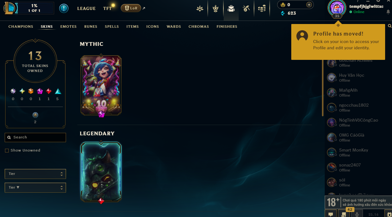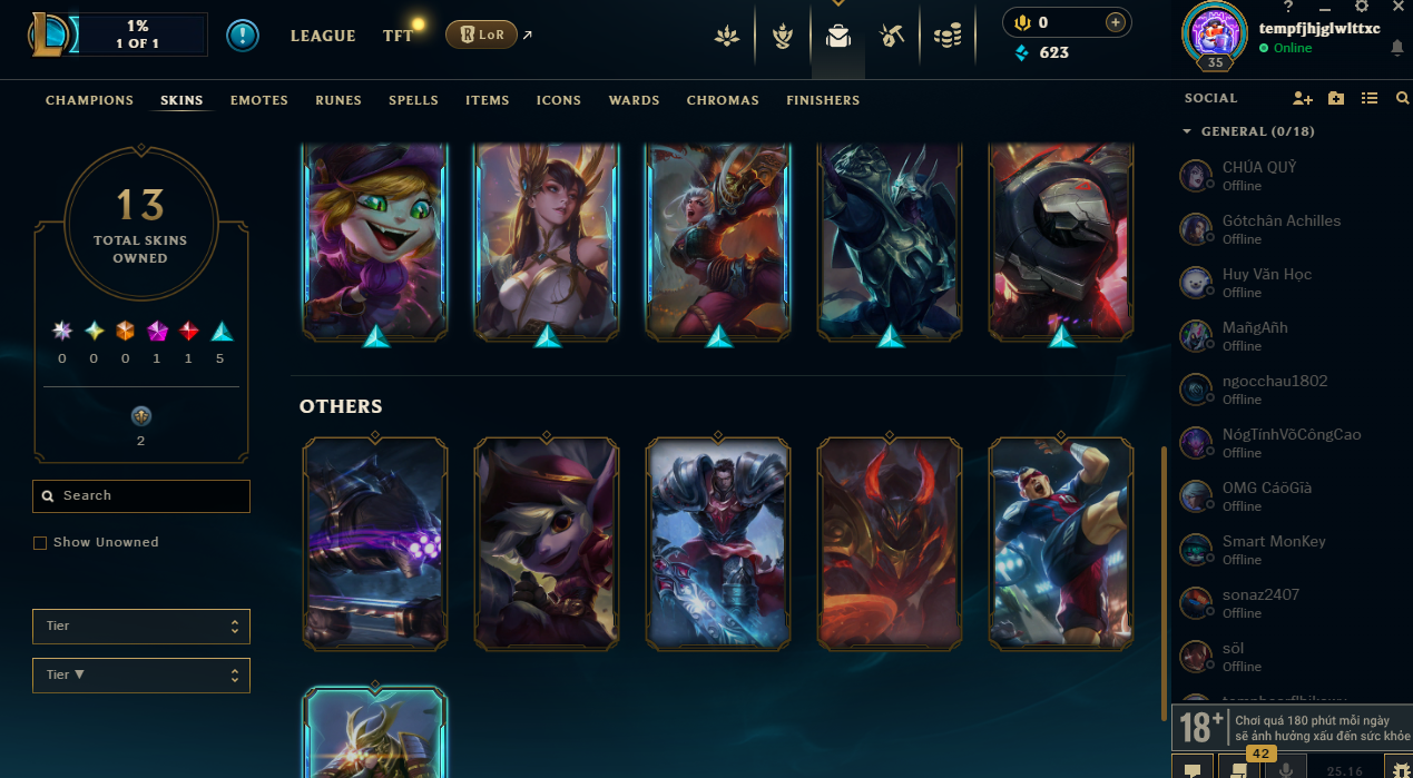 Tài Khoản #1085 - Bảng ngọc : 0 - Không Khung - Rank K.Rank - 0 Tinh hoa lam - 0 RP - Rank động :