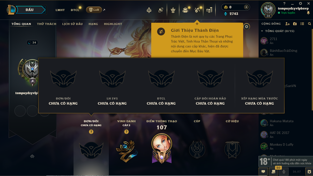 Tài Khoản #1102 - Bảng ngọc : 0 - Không Khung - Rank K.Rank - 0 Tinh hoa lam - 0 RP - Rank động :