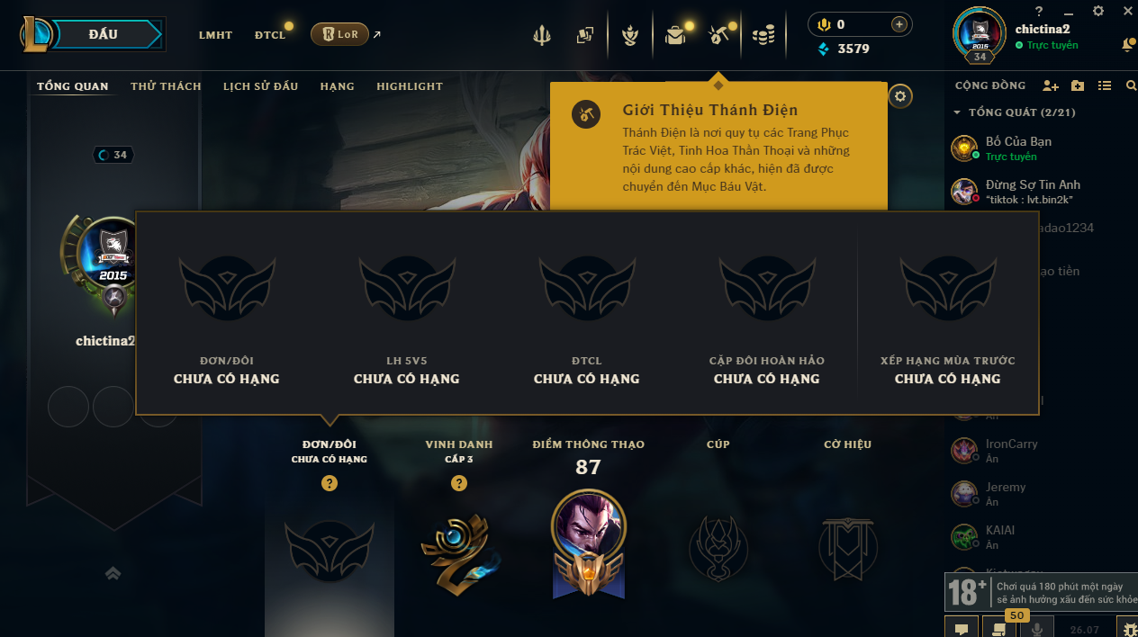 Tài Khoản #1103 - Bảng ngọc : 0 - Không Khung - Rank K.Rank - 0 Tinh hoa lam - 0 RP - Rank động :